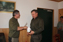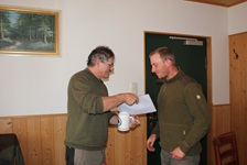 Zum dritten Derby hatten vier Hundeführerinnen und Hundeführer gemeldet, die auch erschienen sind. Rudi Fisch bedankte sich bei Alois Erndl für die Organisation für Ort und die Bereitstellung des Reviers. Nach der Richtebesprechung ging es bei regnerischem Wetter hinaus in das Revier. Trotz der schwierigen Bedingungen wurden die Prüfungsfächer schnell absolviert, da die Hunde gut vorbereitet waren und auch der Besatz und Feder- und Haarwild sehr gut war.