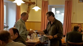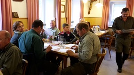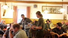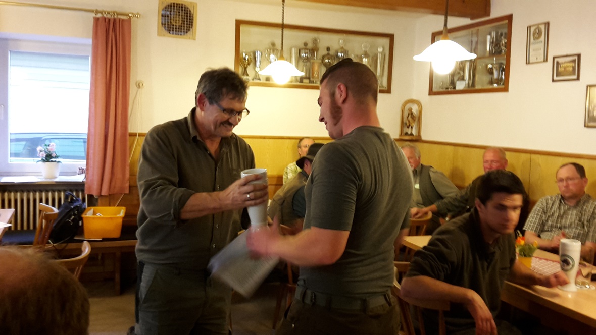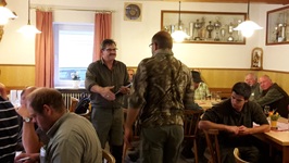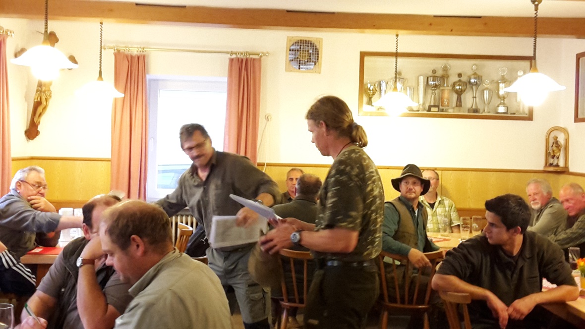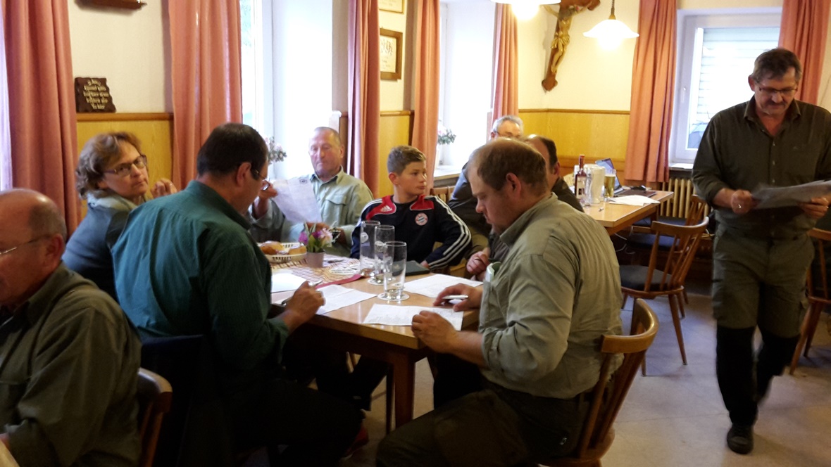 Bei regnerischem Wetter fand die diesjährige Solms statt. Zur Prüfung waren 11 DK, 1 UK und 1 KLM gemeldet, die auch erschienen sind. Prüfungsleiter Rudi Fisch hieß die Hundeführer im Gasthaus Leeb in Oberpöring willkommen. Sein Dank galt den Revierinhabern Heinrich Ertl, Hans Unverdorben sowie Andreas und Alfons Fleischer für die Überlassung der Reviere. Ein großer Dank auch an die Richter, die ihren Sonntag wieder für die Hunde „opferten. Nach einer kurzen Richterbesprechung ging es hinaus in die Reviere. Der Wildbesatz war gut, sodass die Feldarbeit den meisten Hunden keine Probleme bereiteten. Am Wasser war dies anders. So mancher Vierbeiner hatte hier Probleme.