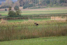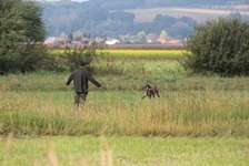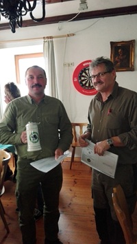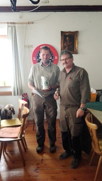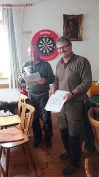 Bedeckter Himmel, ab und zu Regen, so präsentierte sich das Wetter am Samstag bei der diesjährigen VGP. Drei Gespanne hatten gemeldet und sind auch erschienen. Nach einer kurzen Richterbesprechung, wobei ein Dank den Revierinhabern Jürgen Ullrich und Fritz Penterling sowie den Richtern galt, ging es hinaus zur Waldarbeit. Als Richter fungierten Rudi Fisch, Josef Holzbauer und Dr. Wolfram Volkholz. Am späten Samstagnachmittag schloss man den ersten Prüfungstag mit den Fächern der Wasserarbeit ab. Für den Sonntag blieben noch die Fächer der Feldarbeit und einige Gehorsamsfächer. Kurz nach Mittag war die 49. VGP zu Ende. Die Hundeführer hatten ihre Hunde gut vorbereitet, sodass bei der Preisverteilung nur glückliche Gesichter zu sehen waren. Es konnten zwei erste und ein zweiter Preis vergeben werden. Der 1. Vorsitzende Rudi Fisch wünschte den Hundeführern bei den herbstlichen Jagden viel Glück mit ihren Hunden.