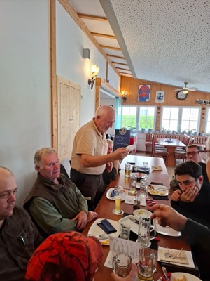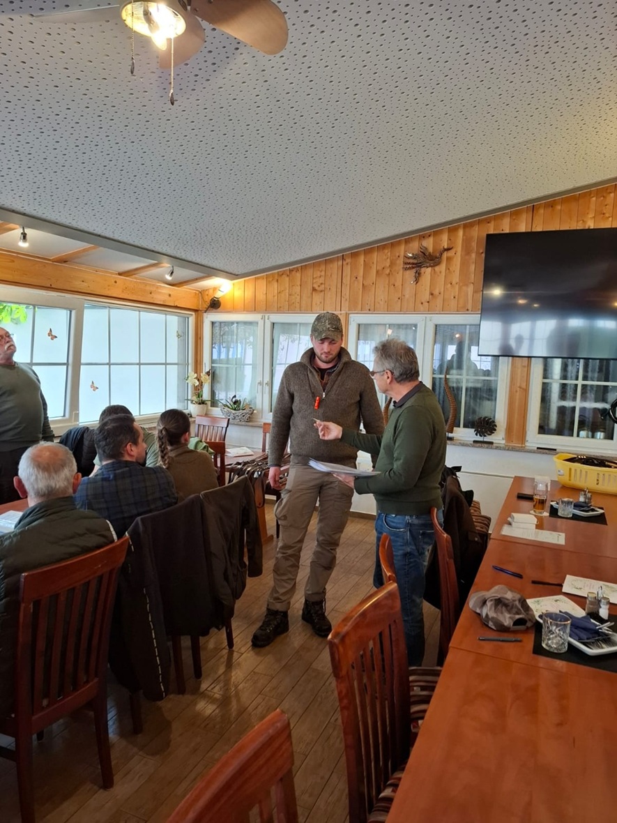 Bei der Preisverteilung am Sonntagnachmittag im Gasthaus Hörner in Moos bedankte sich Prüfungsleiter Rudi Fisch bei den Revierinhabern und Revierführern. Ein besonderer Dank galt den Leistungsrichtern, die wiederum sehr große Sachkenntnis bewiesen.