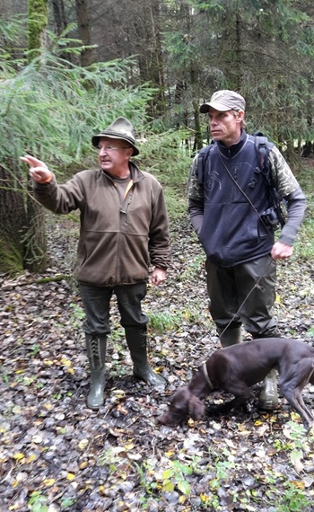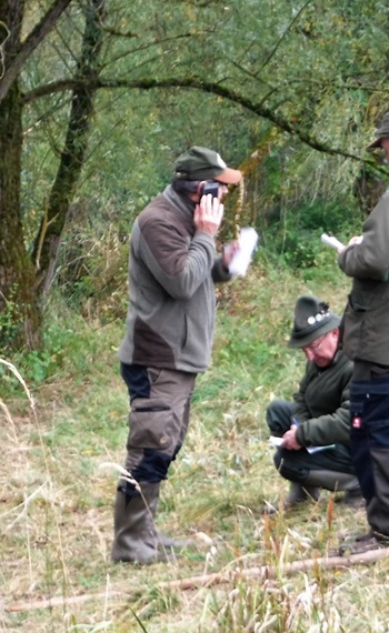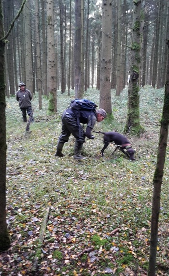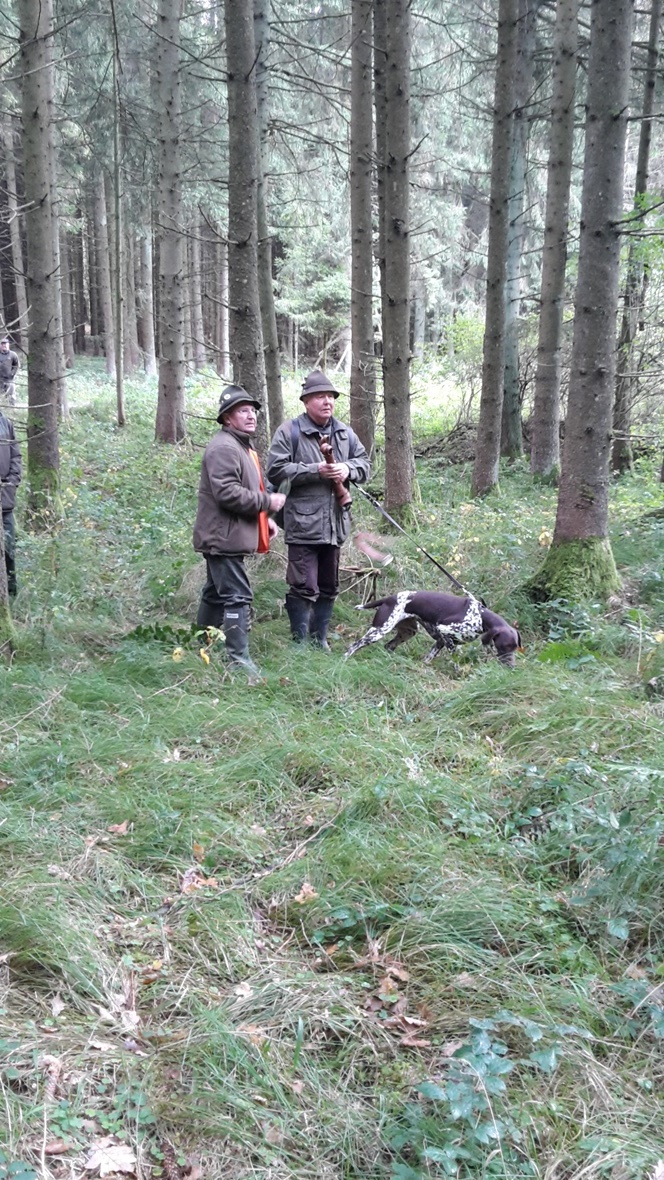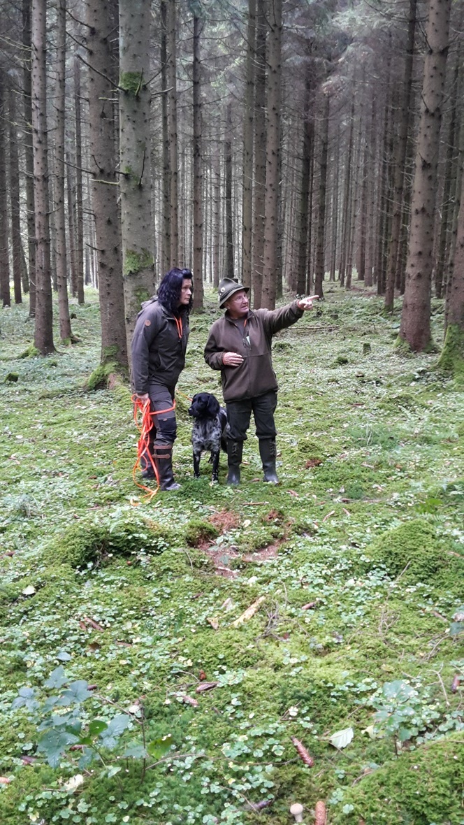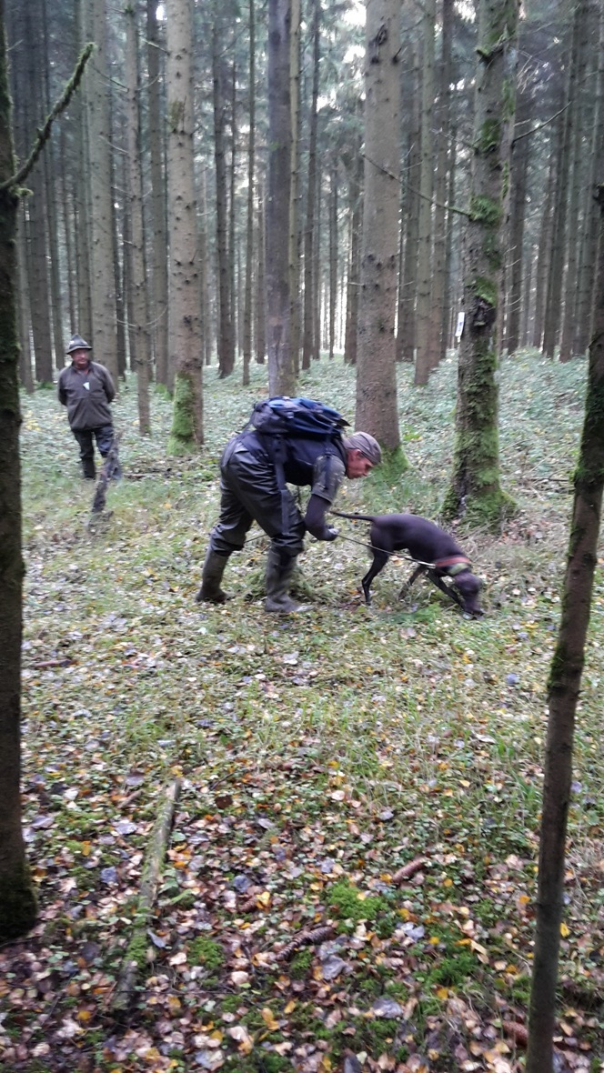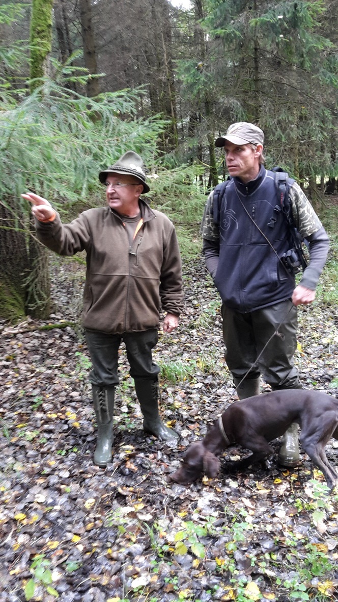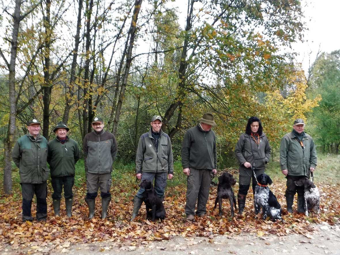 Zur diesjährigen VGP hatten vier Gespanne gemeldet, alle sind auch erschienen. Bei regnerischem und windigem Wetter begrüßte Prüfungsleiter Rudi Fisch am Samstagmorgen die Hundeführerinnen und Hundeführer. Er bedankte sich bei den Revierinhabern Fritz Penterling, Jürgen Ulrich und Hans Unverdorben für die Bereitstellung der Reviere. Nach der Richtersitzung ging es hinaus in das Revier. Als erstes begann man mit den Fächern der Waldarbeit. Nach dem jedoch für Sonntag sehr schlechtes Wetter vorhergesagt wurde, disponierte man am Nachmittag um, und zog die Feldarbeit vor. Ein guter Entschluss, wie sich bald herausstellen sollte. Die Gespanne waren sehr gut vorbereitet, so dass die Schweißarbeit und die Haarwildschleppen zügig bewerkstelligt werden konnte. Sehr erfreulich war das Wildvorkommen im Revier von Hans Unverdorben. Sehr gutes Fasanenvorkommen und zahlreiche Hasen verlangten den Hunden so einiges ab. Hier konnten sie ihr Leistungspotenzial voll ausschöpfen.