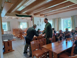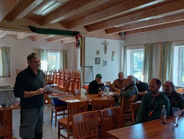 Nach der Anmeldung im Prüfungslokal fand eine Richterbesprechung statt. Da zwei ausländische Gespanne am Start waren, fand diese zweisprachig statt. Schließlich ging es hinaus in die Feld-, Wasser- und Waldreviere.