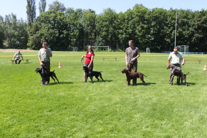 Temperaturen um die 30 °, strahlend blauer Himmel - ein Sommertag wie im Bilderbuch, das war das Wetter bei der diesjährigen Zuchtschau. Das Zuchtschaugelände liegt aber direkt neben der kühlen Isar, von der immer ein laues Lüftchen wehte, so dass die fast tropischen Temperaturen den Hunden gar nicht so sehr zusetzten.