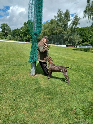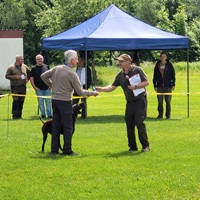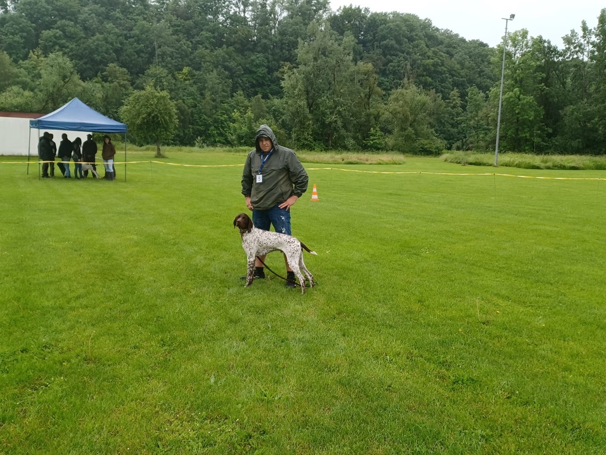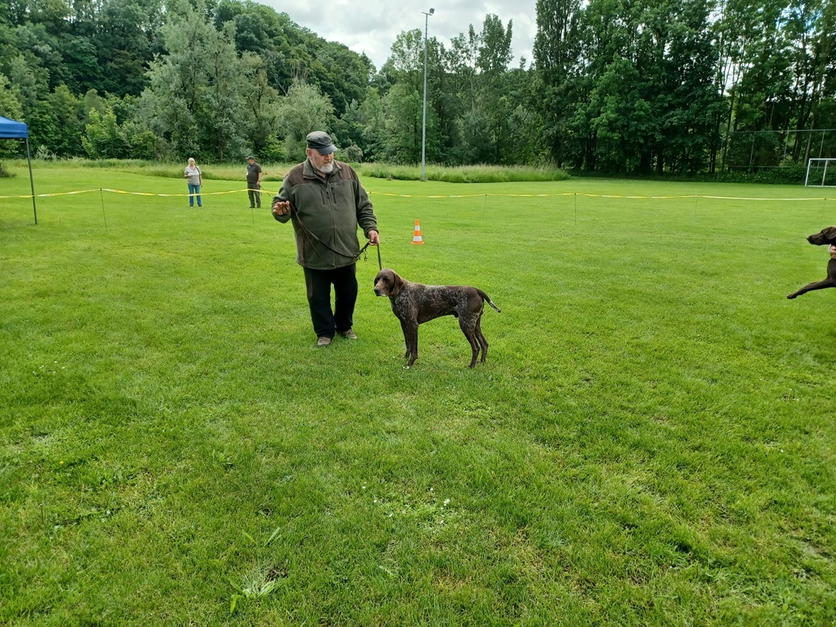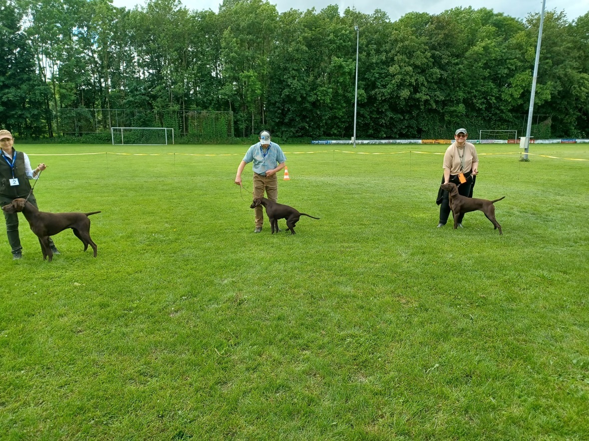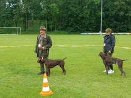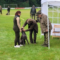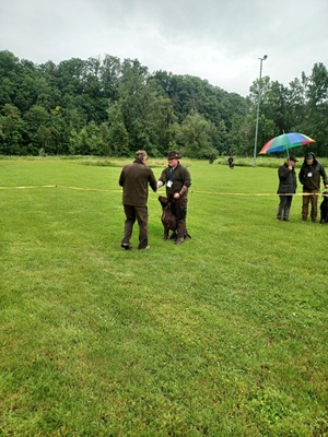 Der Wettergott meinte es in diesem Jahr nicht besonders gut. Regenschauer waren vor allem zu Beginn der Zuchtschau die Begleiter. Gegen Mittag klarte es etwas auf, so dass die Altersklasse Rüden, die Jugendklasse Hündinnen und Altersklasse Hündinnen vom Regen verschont wurden.