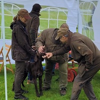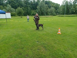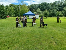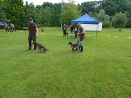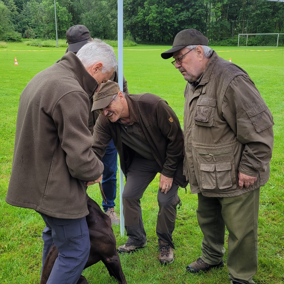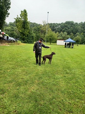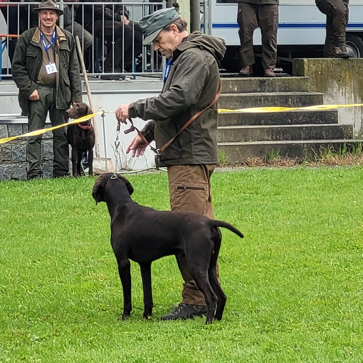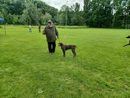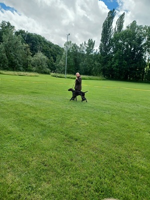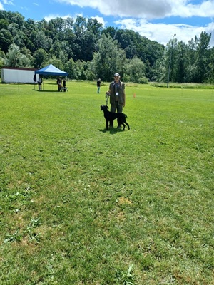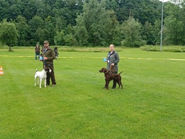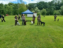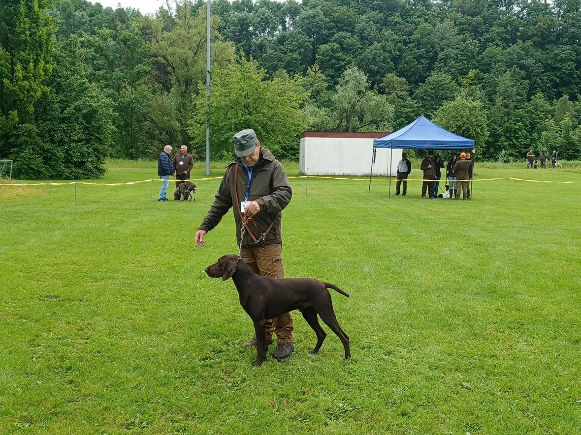 Der Wettergott meinte es in diesem Jahr nicht besonders gut. Regenschauer waren vor allem zu Beginn der Zuchtschau die Begleiter. Gegen Mittag klarte es etwas auf, so dass die Altersklasse Rüden, die Jugendklasse Hündinnen und Altersklasse Hündinnen vom Regen verschont wurden.