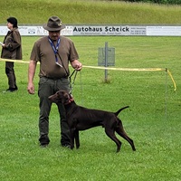 Alois Erndl konnte den Präsidenten des JGHV, Karl Walch, begrüßen. Er hatte den weiten Weg auf sich genommen, um seinen Rüden zu präsentieren.